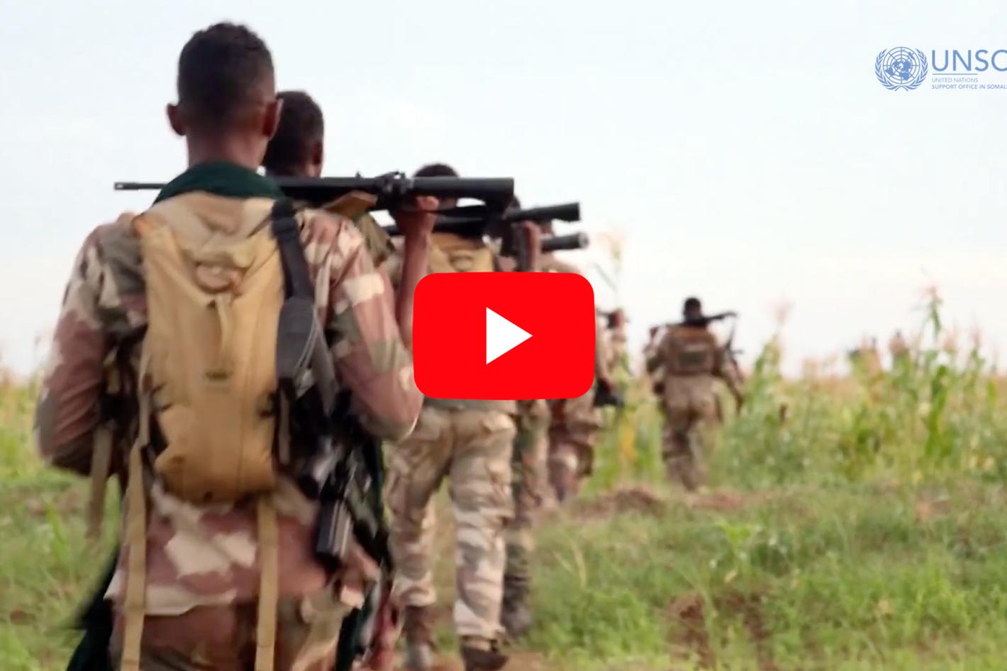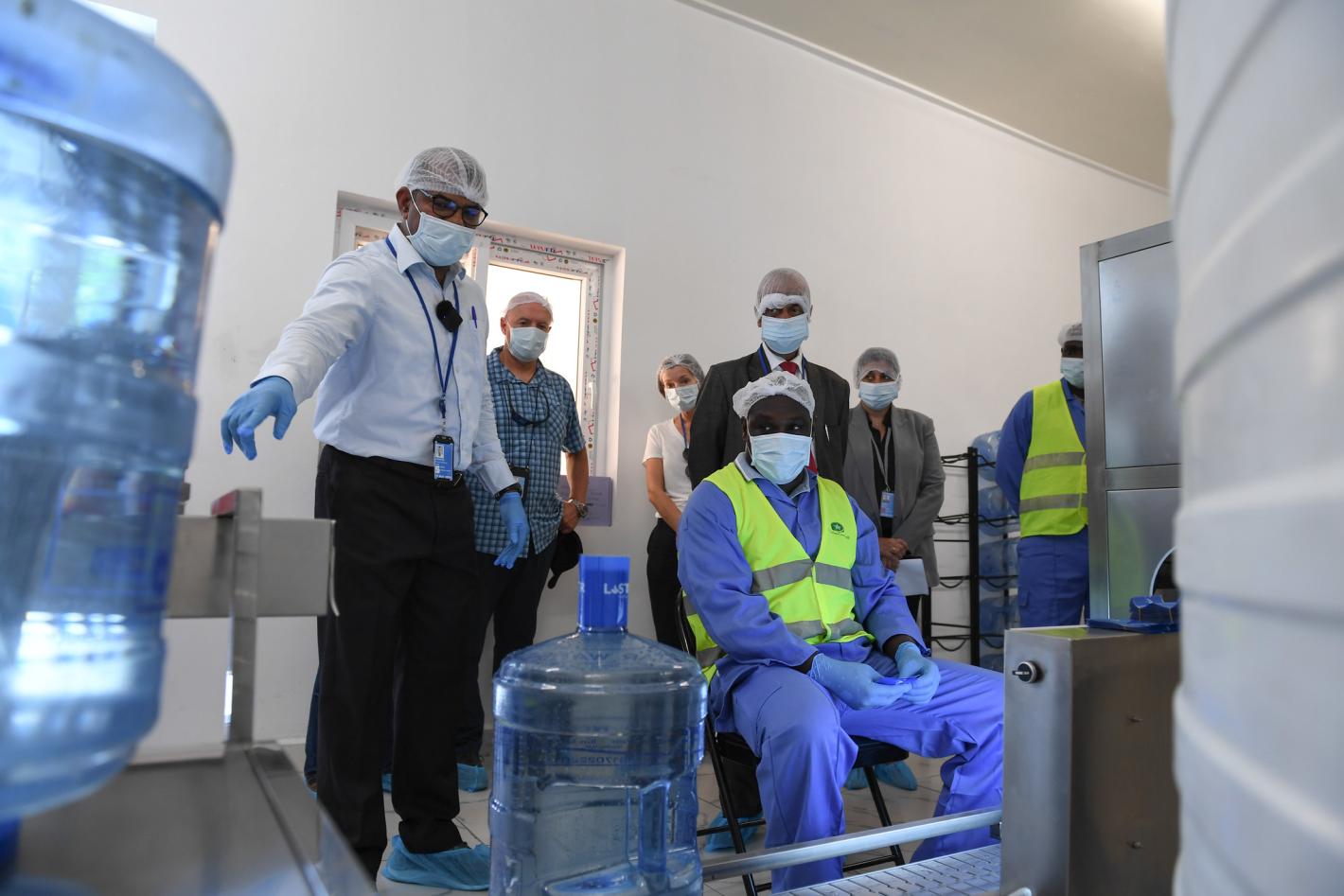 Mogadishu – Inside the UN compound’s water bottling plant, workers in protective gear operate machines that fill five-gallon reusable plastic bottles with purified drinking water. The bulk water bottles thereafter roll off a…