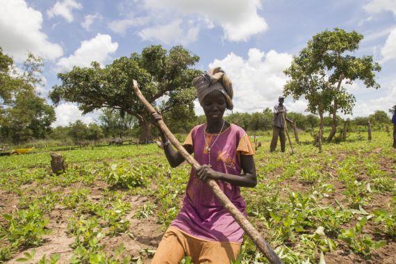 Woman weeding peanut crop at UN Food and Agriculture Organization (FAO) project in Aweil West County, Northern Bahr El-Ghazal State. FAO's implementing partner for the project is the non-governmental organization Samaritan's…