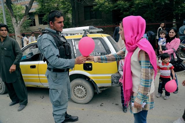 KABUL - In the midst of ongoing violence, more than 100 Afghan artists and activists today gave away 10,000 pink balloons to residents of the country’s capital, Kabul, in what may have been the largest public art installation…