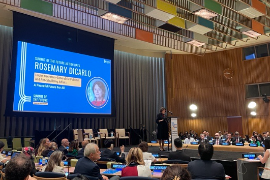 Remarks by Under-Secretary-General Rosemary A. DiCarlo Opening of the Action Day ‘A Peaceful Future for All’ New York, 21 September 2024 Distinguished guests, Dear friends and colleagues, Good morning, first of all, welcome…