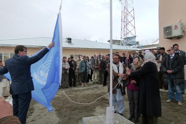 BAMYAN - United Nations and provincial officials inaugurated a new office compound of the UN Assistance Mission in Afghanistan (UNAMA) in the country's Central Highlands province of Bamyan today. United Nations flag was…