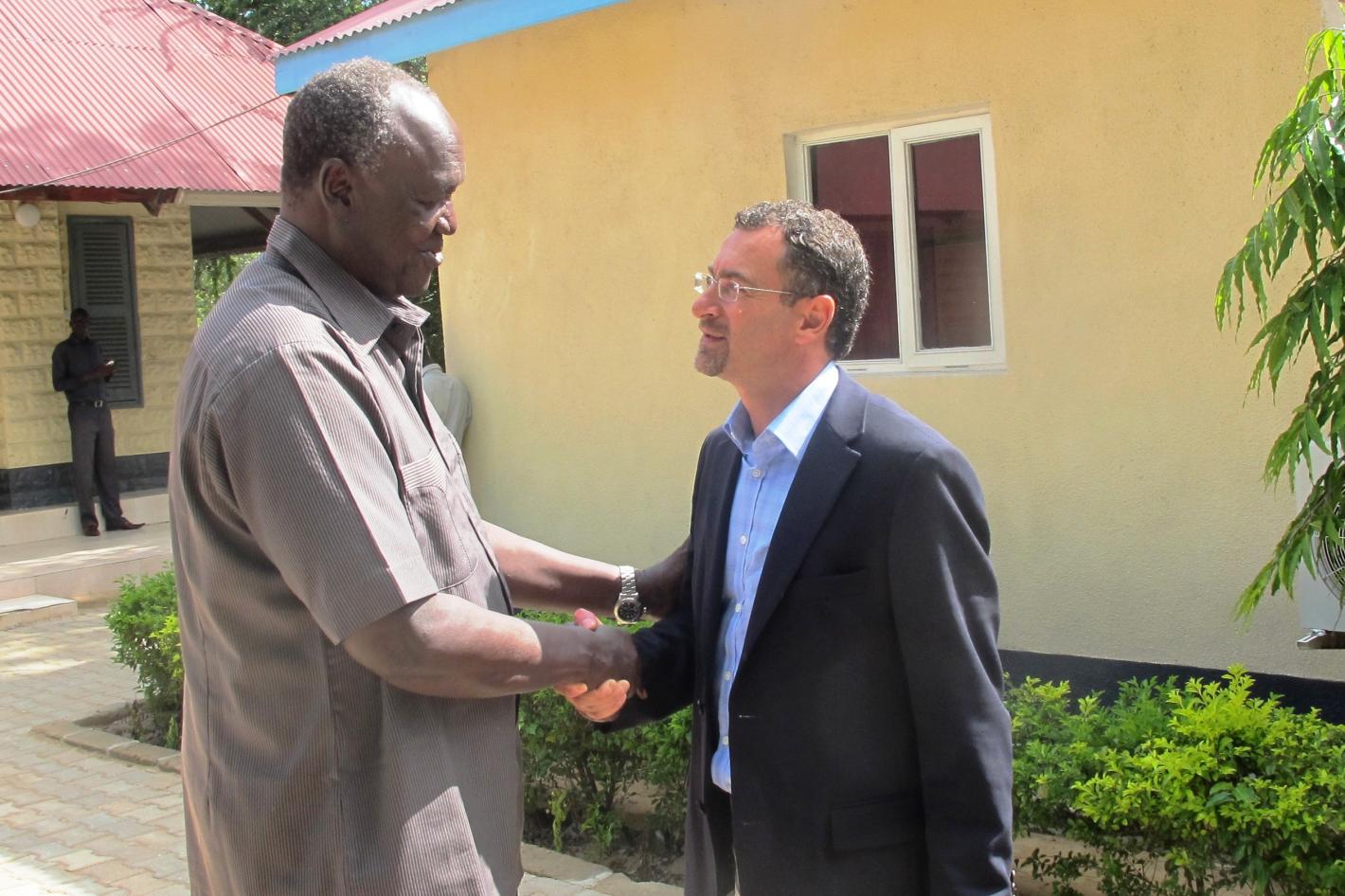 4 September 2012 - Toby Lanzer, UNMISS Deputy Special Representative of the Secretary-General, meeting with Jonglei State Governor Kuol Manyang Juuk in Pibor. The governor said the state was generally stable, although poor…