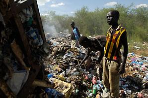 Scavenging for food in a Juba garbage dump along with some chickens, adults and other children, 12-year-old Josephine Poni said her life depended on how much the rich threw away. Scavenging for food in a Juba garbage dump…