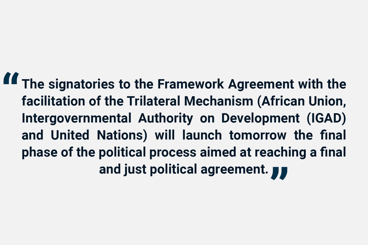 The signatories to the Framework Agreement with the facilitation of the Trilateral Mechanism (African Union, Intergovernmental Authority on Development (IGAD) and United Nations) will launch tomorrow the final phase of the…