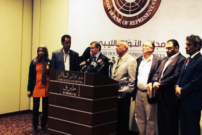 الممثل الخاص للأمين العام للأمم المتحدة في ليبيا، برناردينو ليون، يجتمع مع رئيس مجلس النواب الليبي السيد عقيلة صالح لإطلاعه على المشاورات المتعلقة بمبادرة الحوار والتحضيرات الجارية من أجل عقد الجولة الثانية للحوار. طبرق،…