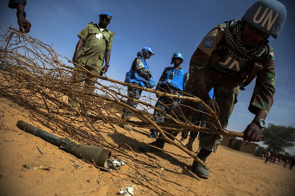 On 25 March 2014, a UNAMID peacekeeper marks with branches the location of a projectile abandoned in Mellit, North Darfur. Photo by Albert González Farran. By Sharon Lukunka [4 April 2014] While walking home on 5 July 2013…