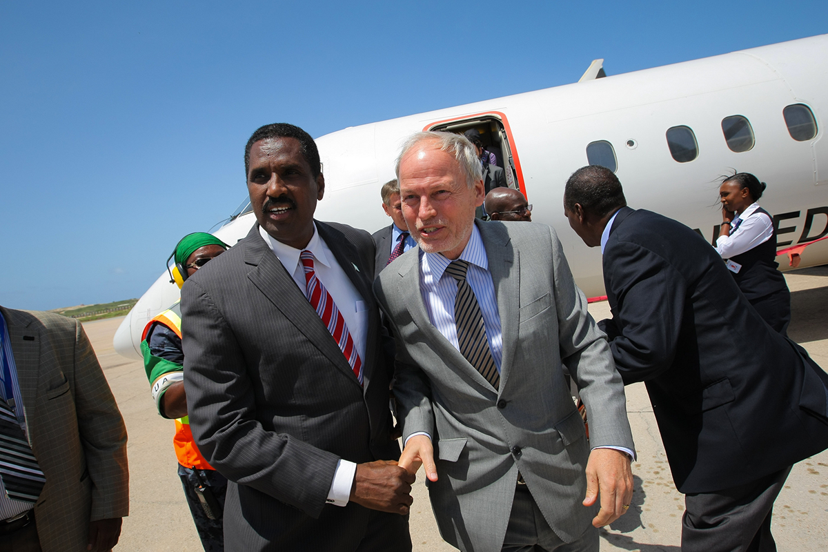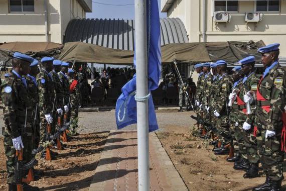 Preparing to raise the UN flag at celebrations for International Day of UN Peacekeepers in Juba on 29 May. Photo: UNMISS/Isaac Billy. Click for larger image