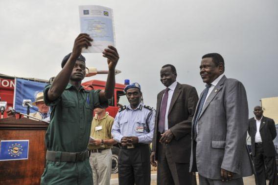 South Sudan National Police Service officer holding graduation certificate from UNMISS-assisted aviation security course at Juba International Airport on 3 June. The week-long course was one of several trainings UN Police has…
