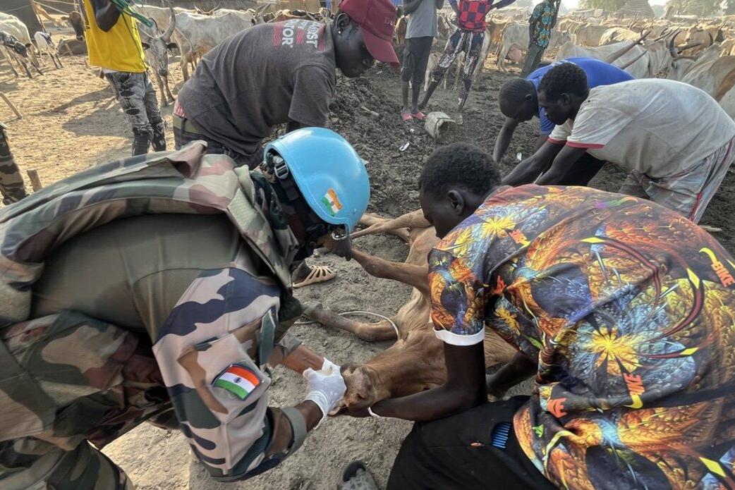 The Indian Battalion serving with UNISFA works with the local community to treat cattle through one of their regular veterinary camps in Abyei. UN Photo