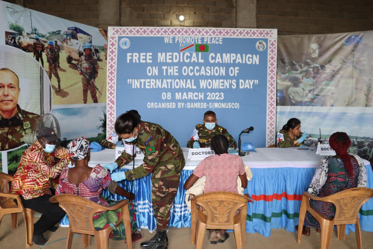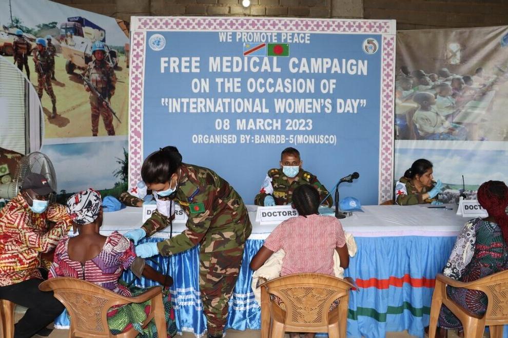 In Bunia, on 8 March 2023, peacekeepers from MONUSCO's Bangladeshi contingent organized a free medical consultation at Ndromo camp (Ituri). Photos MONUSCO / Lilianne Nyatcha