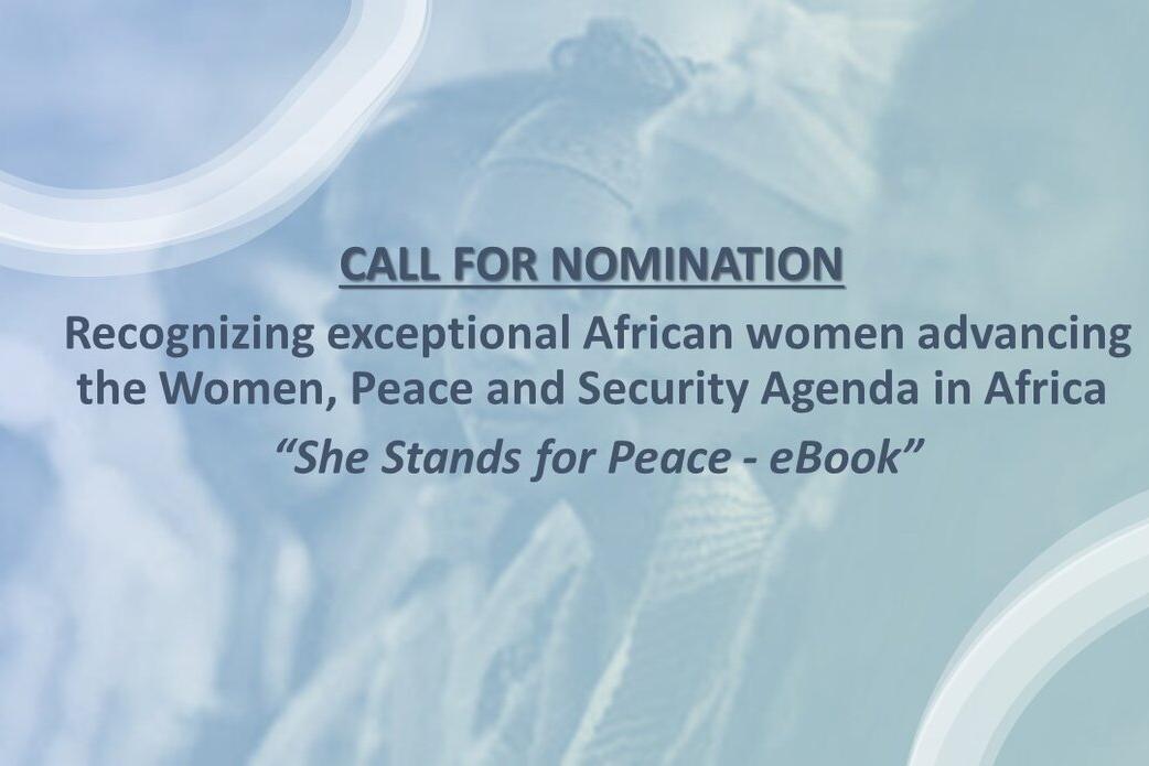 دعوة إلى الترشيح للاعتراف بالمرأة الأفريقية الاستثنائية التي تعمل على النهوض بأجندة المرأة والسلام والأمن في إفريقيا "إنها تقف من أجل السلام - الكتاب الإلكتروني" خلفية في فبراير 2020، نشر مكتب الأمم المتحدة لدى الاتحاد…
