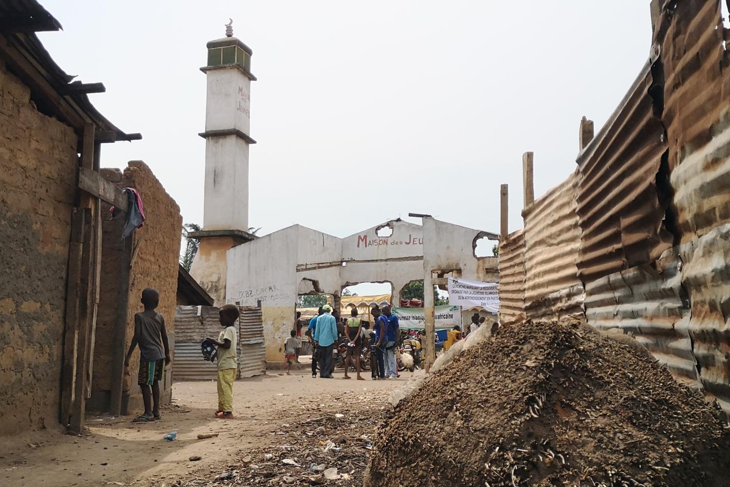 Only a shell of the former Petevo mosque – consisting of a few outer walls, atop one of which a minaret still stands – remains on the spot where the house of worship for Muslim residents of Bangui’s 6th district once stood…